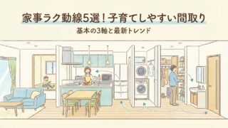 ①子育てラクの間取り 家事ラク動線5選!子育てしやすい間取りを叶える基本の3軸と最新トレンド 子育て中の毎日、家事と育児に追われてクタクタになっていませんか。「もっと効率よく動けたらいいのに」と、つい溜息が出ちゃいますよね。そんな悩みを解決するヒントとして、子育てしやすい間取りの考え方や、家事ラク動線のアイデアをまとめました。 2026.04.08 ①子育てラクの間取り